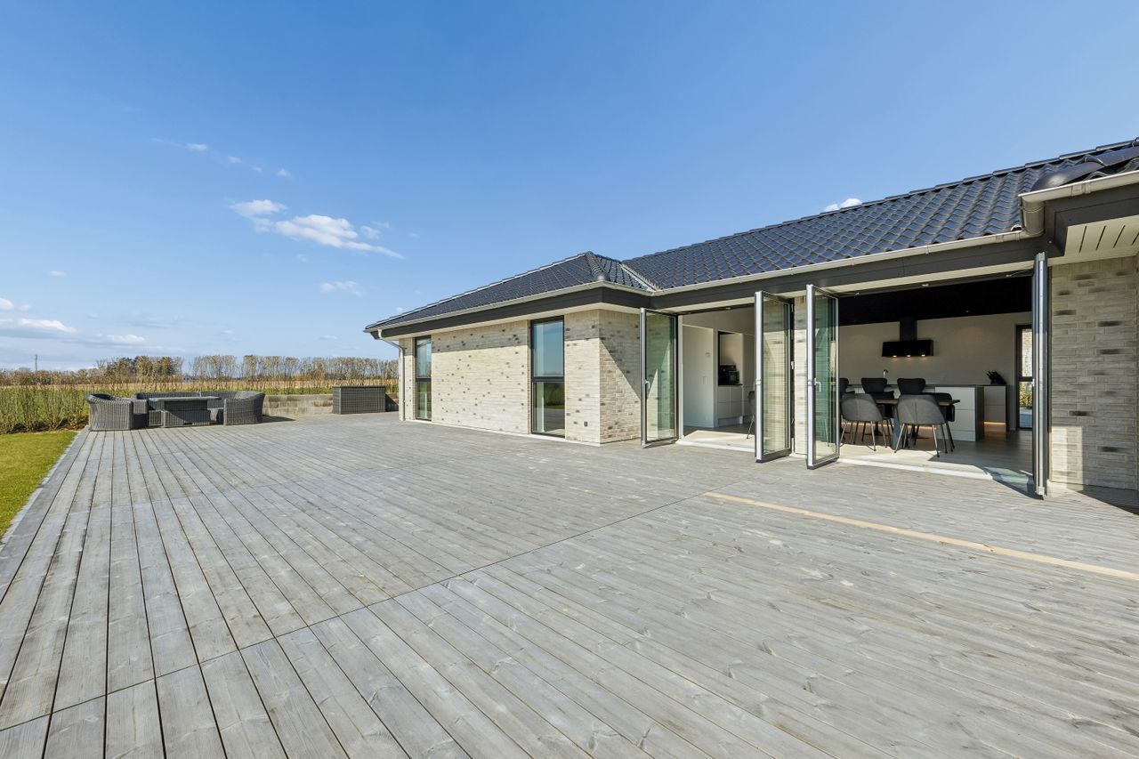 Er drømmen en fantastisk moderne familievilla på en dobbeltgrund i naturskønne omgivelser udsigt til åbne vidder - og til under 4 mill. kr. så læs videre her. I kan flytte direkte ind og folde tilværelsen ud i rammerne af denne lækre etplansvilla fra 2023. Her får I et moderne hjem med rene linjer og fuld komfort, og det ligger trygt og godt på et lukket vænge med fri udsigt over markerne. Grunden folder sig ud med 2030 m2, så der er masser af plads omkring jer. I får desuden en nybygget dobbelt carport med et tilstødende udhus på 24 m2. Boligen er indrettet med stilsikker hånd og gode løsninger. De 179 m2 byder på gennemgående Svane-inventar, Troldtekt-akustiklofter, gulvvarme overalt, BWT-anlæg, Nilan-ventilationsanlæg, Cat 8-kabler, SG-spots, Acces Point på Wifi og indbyggede højtalerstik i opholdsrummene. Pladsen er perfekt fordelt på bl.a. entre, bryggers, to børneværelser og to badeværelser, hvoraf det ene ligger i forbindelse med en luksuriøs forældreafdeling, der også har kontor og walk-in. Det hele bindes sammen af stuen og et højloftet stort køkken-alrum, hvor det flotte Svane-køkken er indrettet med kaffestation og viktualierum, mens alrummets dobbeltdøre åbner til en stor, solrig træterrasse med udsigt til mark og åbne vidder. I Tappernøje er der stærke fællesskaber og gang i foreningslivet, og byen har bl.a. skole, hal, daginstitutioner, indkøb samt nem adgang til motorvejen, så I hurtigt kan pendle videre til job. Samtidig er naturen i fokus, og I bor tæt på Folkeskoven med alt fra bålhus til svævebane.